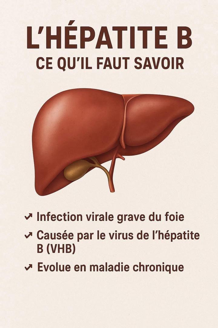 L’hépatite B est une infection virale du foie causée par le virus de l’hépatite B (VHB). Ce virus peut provoquer une inflammation du foie, qui peut être aiguë (courte durée) ou chronique (persistante à long terme). Elle est potentiellement grave, car elle peut entraîner des complications comme la cirrhose, l’insuffisance hépatique ou le cancer du foie. Selon l’Organisation mondiale de la santé (OMS), environ 296 millions de personnes vivaient avec une hépatite B chronique en 2019, et elle cause environ 820 000 décès par an dans le monde.